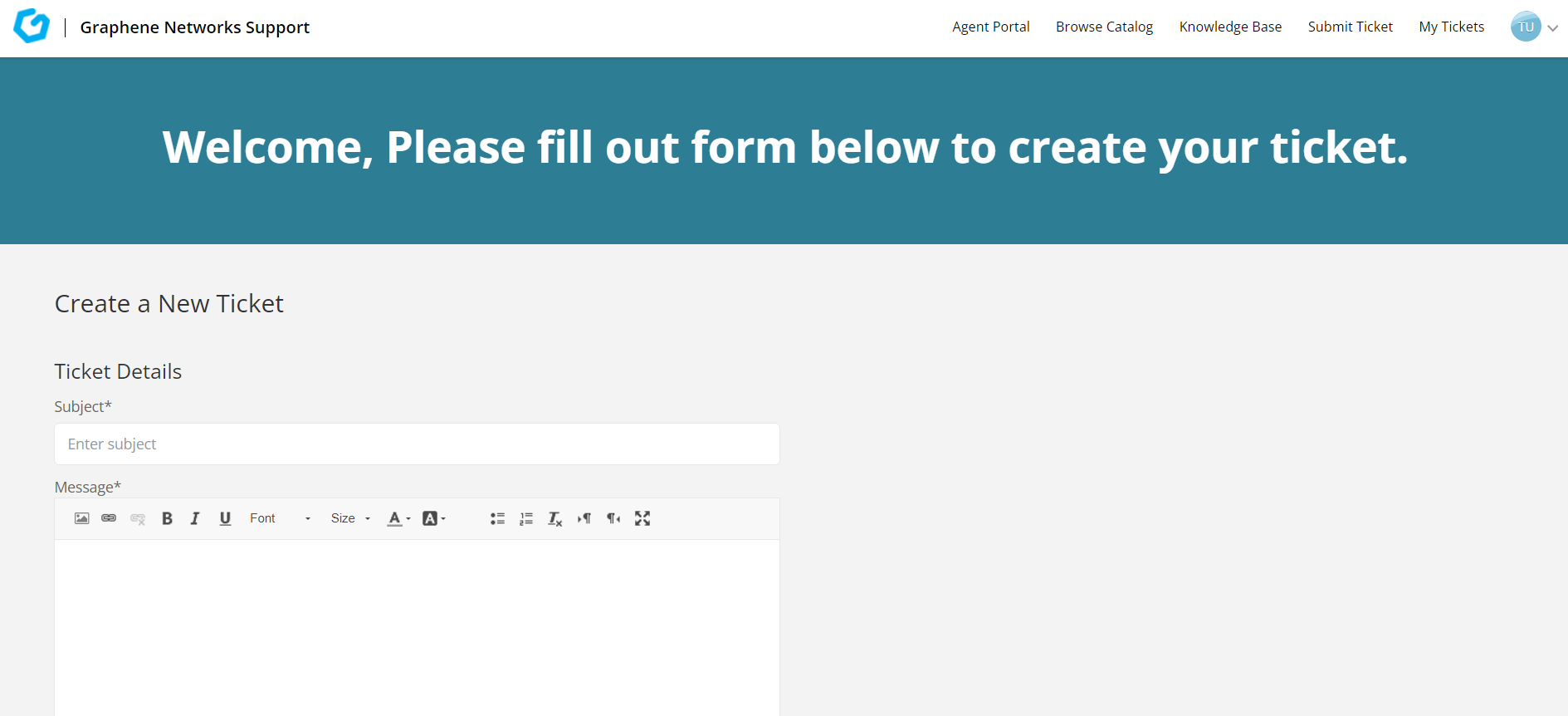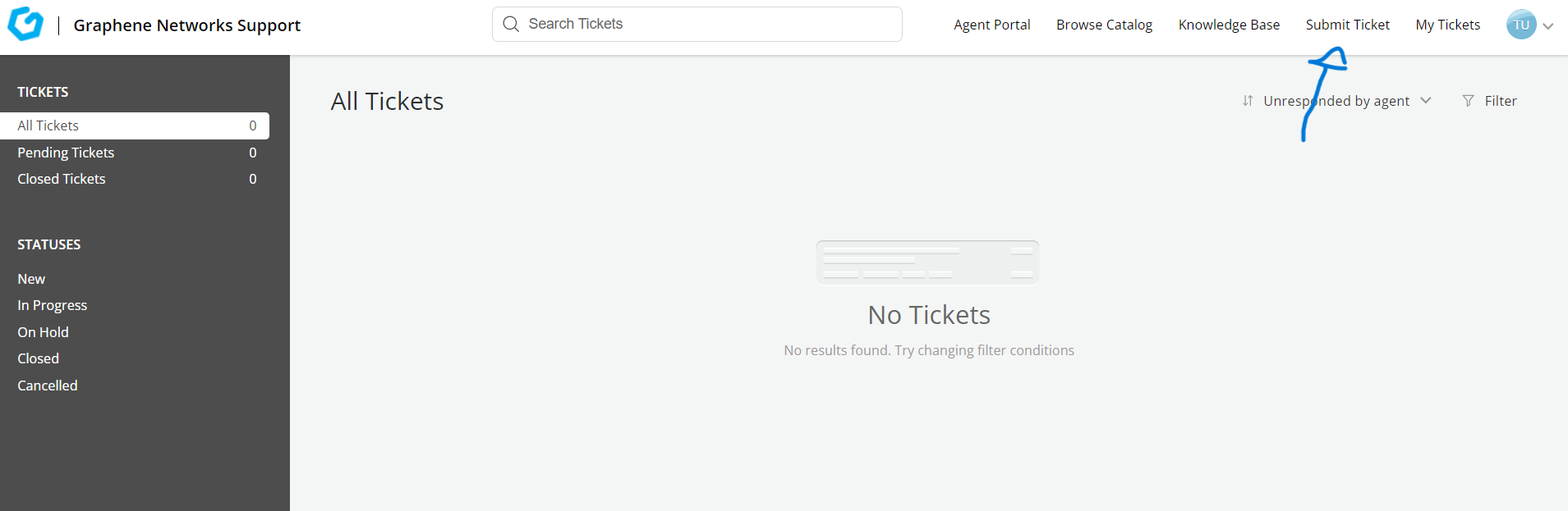 - After logging into the portal, you can click on the Submit ticket link on the header as indicated in the picture below: